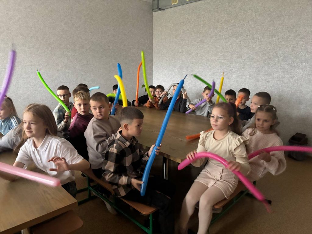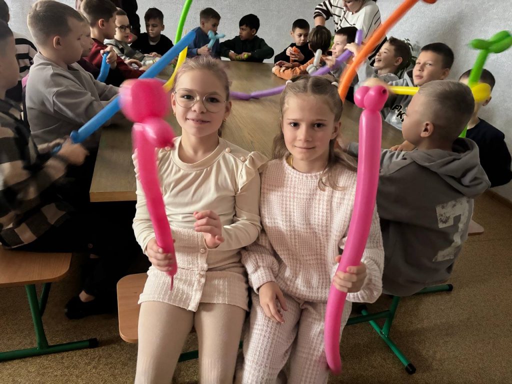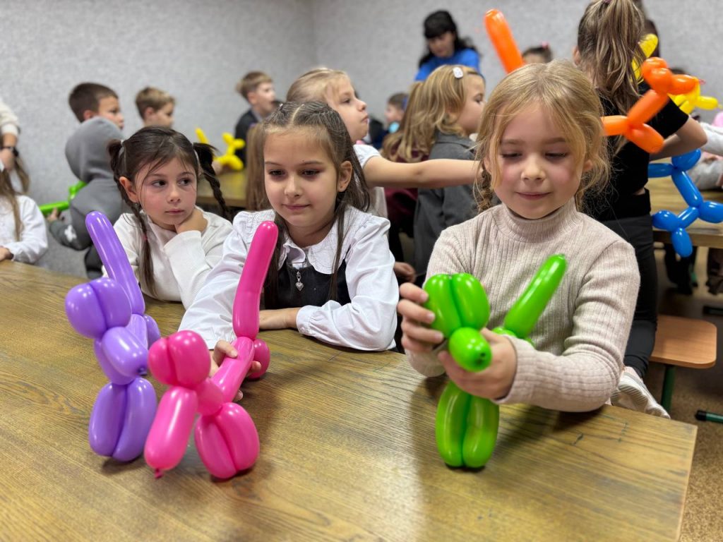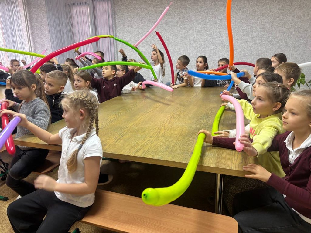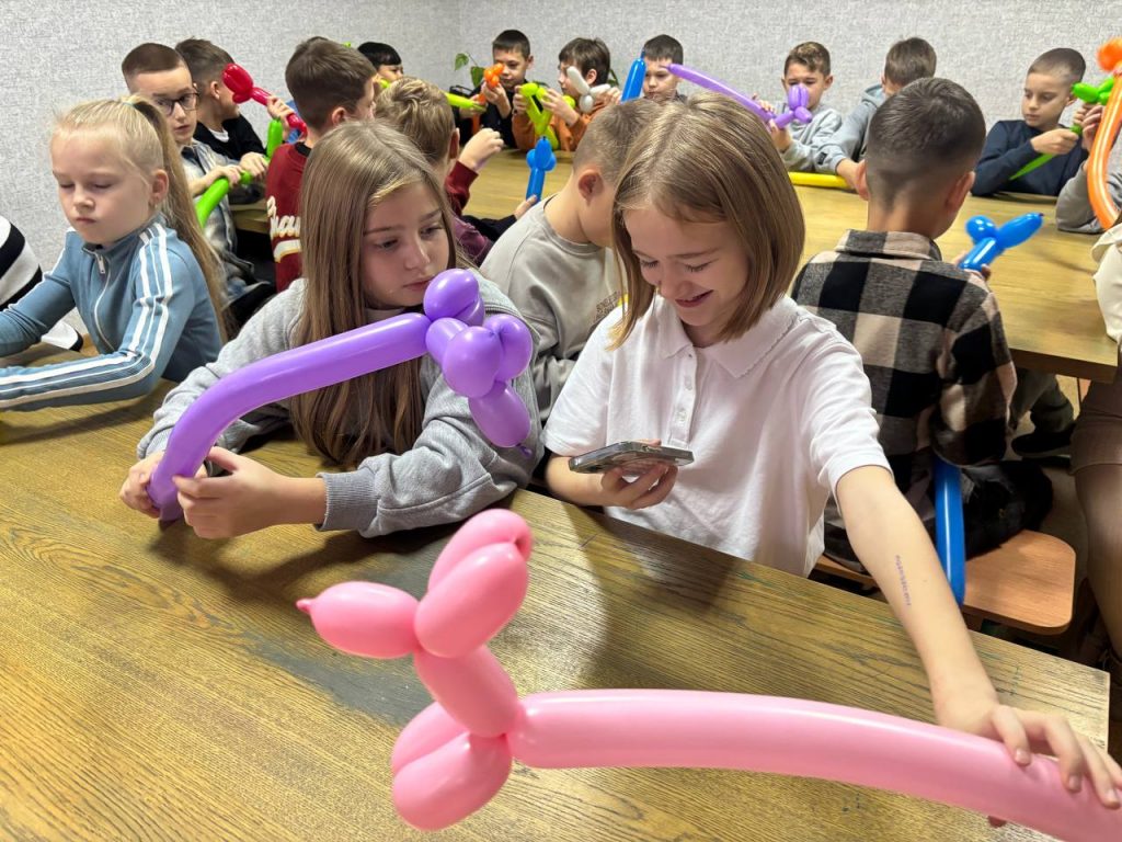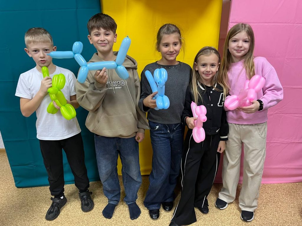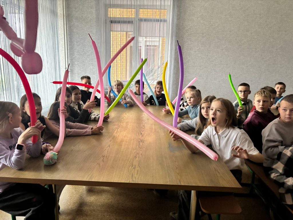 Щоб створити атмосферу радості та творчості, для учнів початкових класів було проведено заняття з твістингу — ми вчилися крутити повітряні кульки та створювати з них фігурки. Головним героєм майстер-класу став веселий повітряний песик, якого змогли зробити всі учасники.
