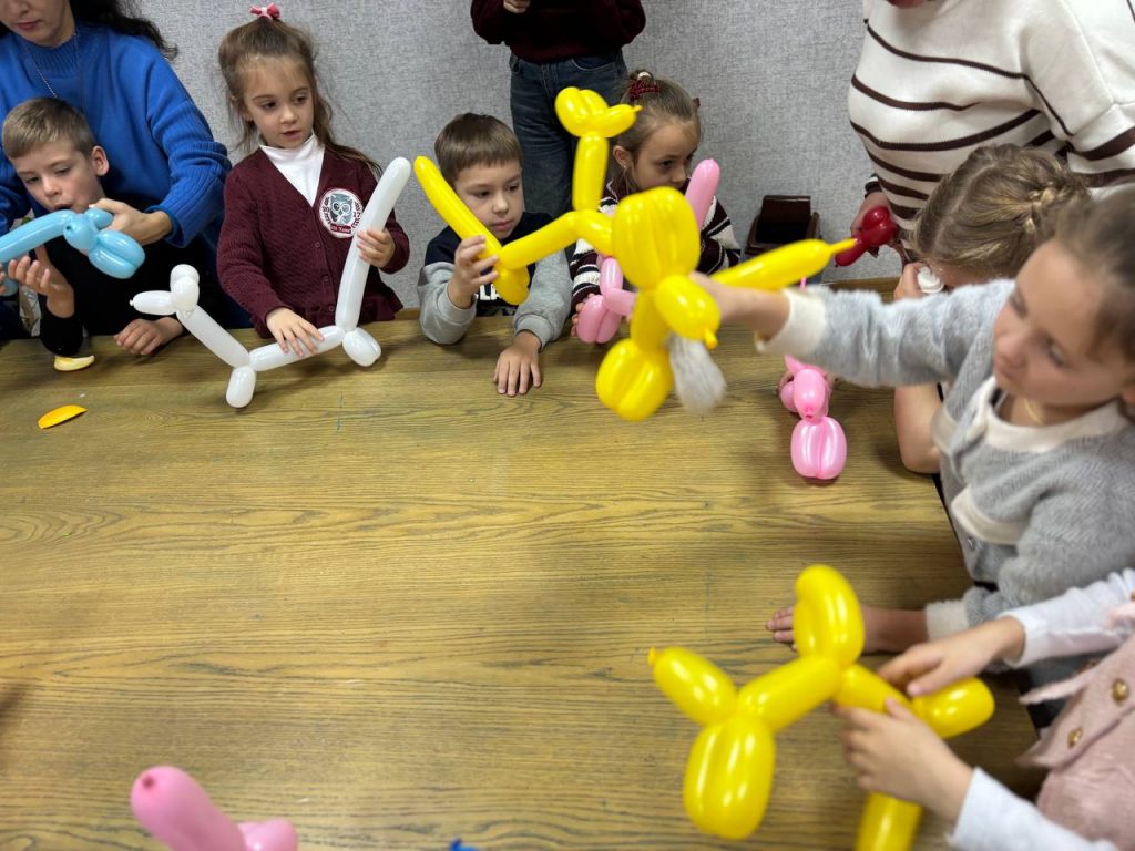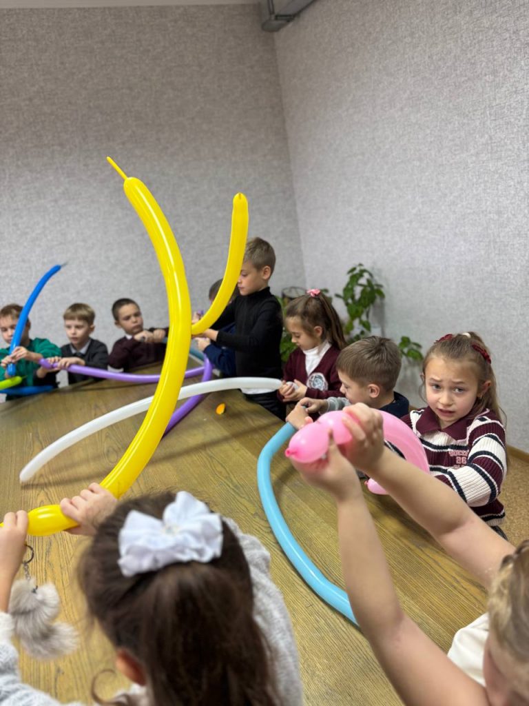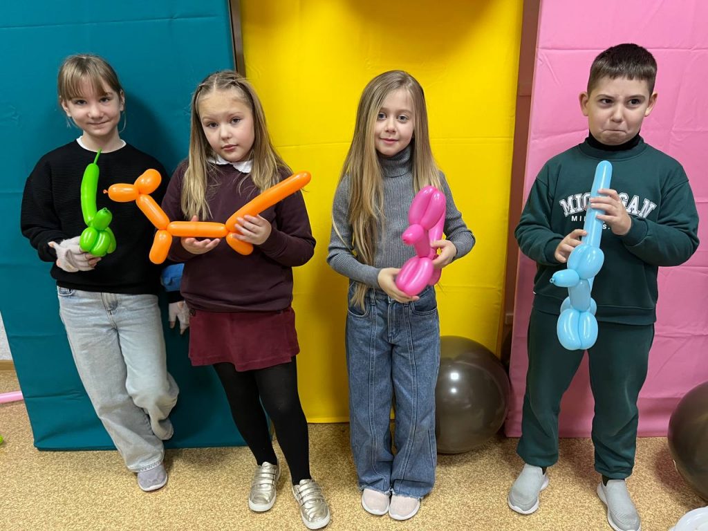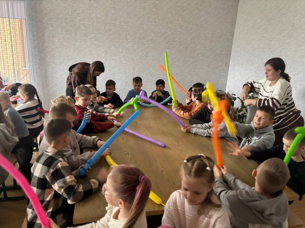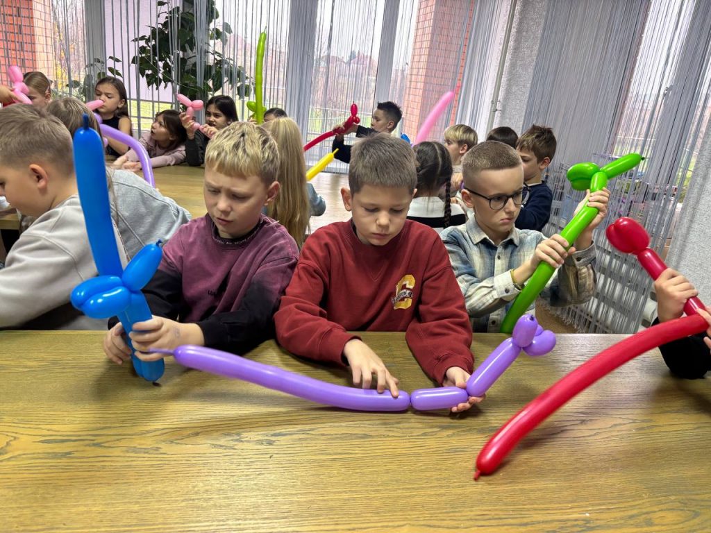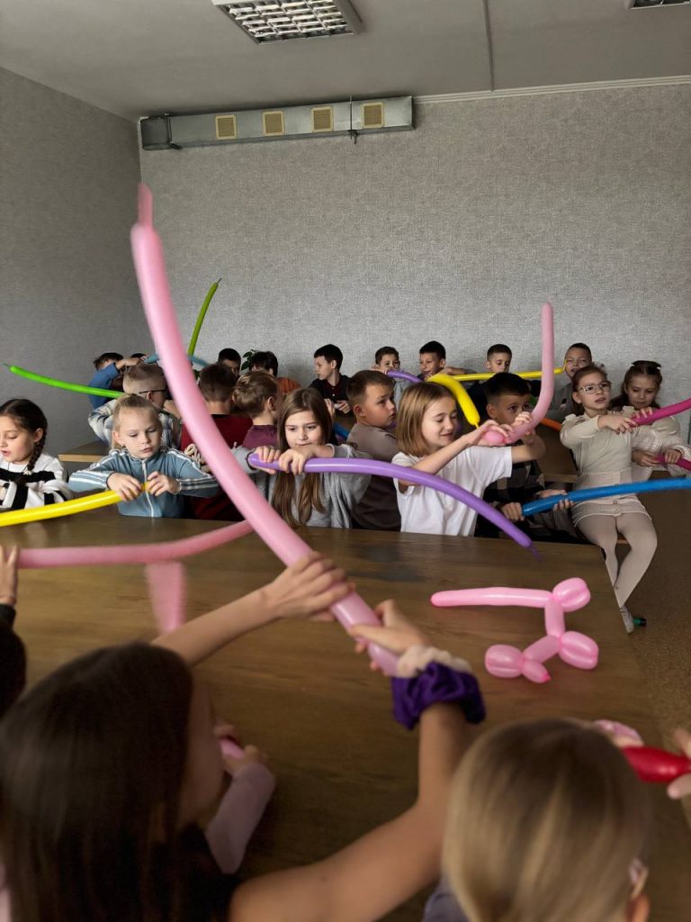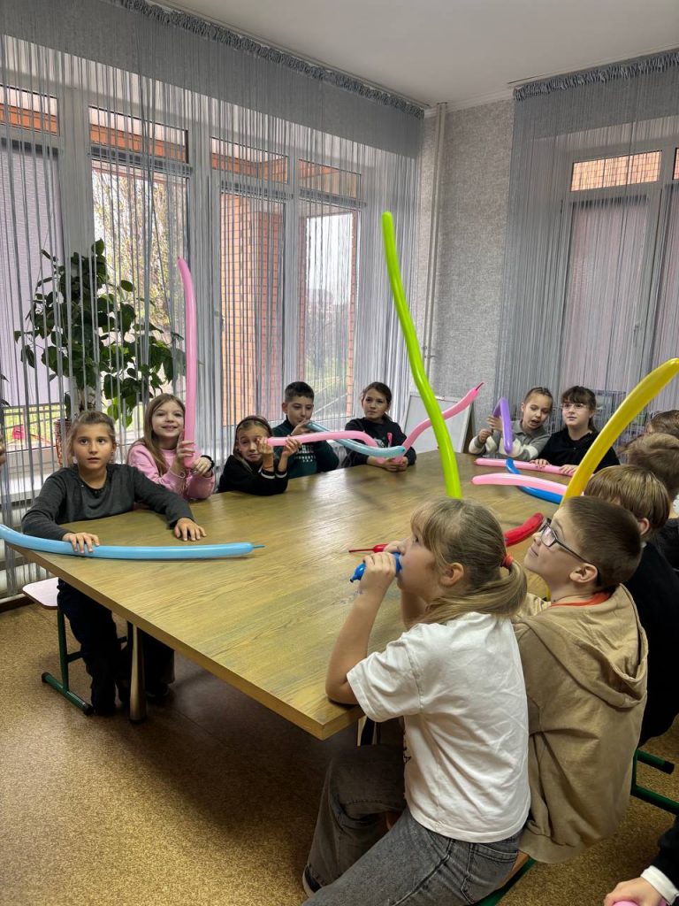 Щоб створити атмосферу радості та творчості, для учнів початкових класів було проведено заняття з твістингу — ми вчилися крутити повітряні кульки та створювати з них фігурки. Головним героєм майстер-класу став веселий повітряний песик, якого змогли зробити всі учасники.