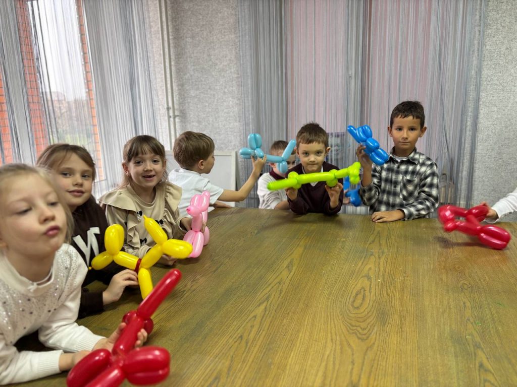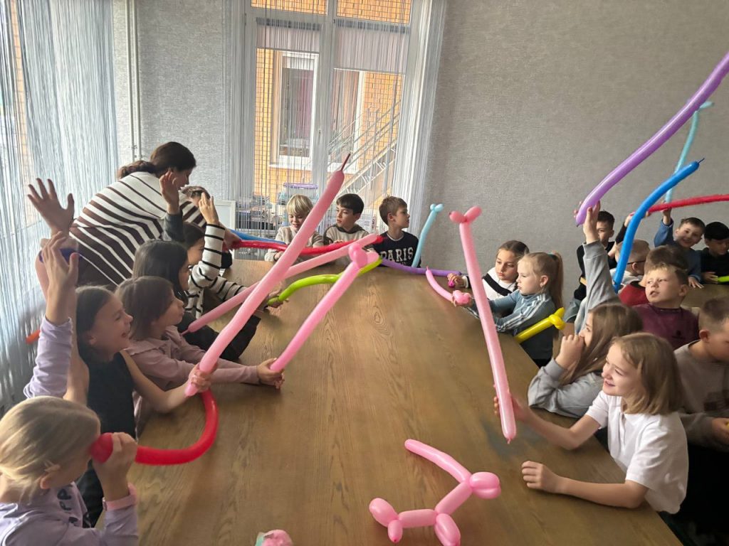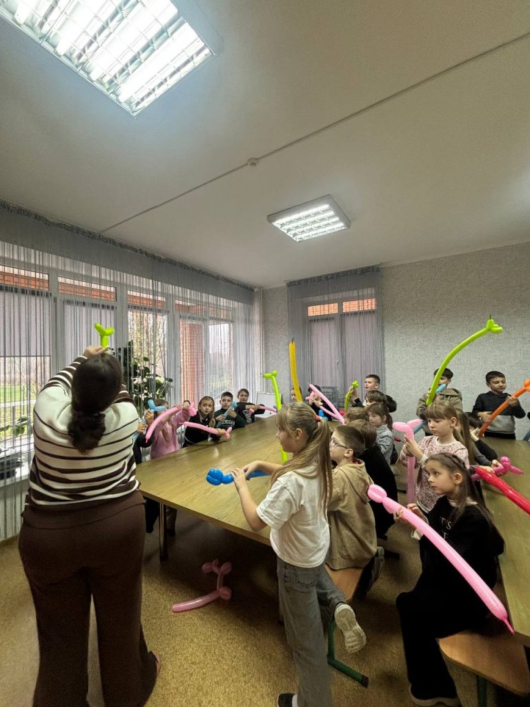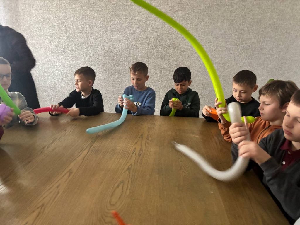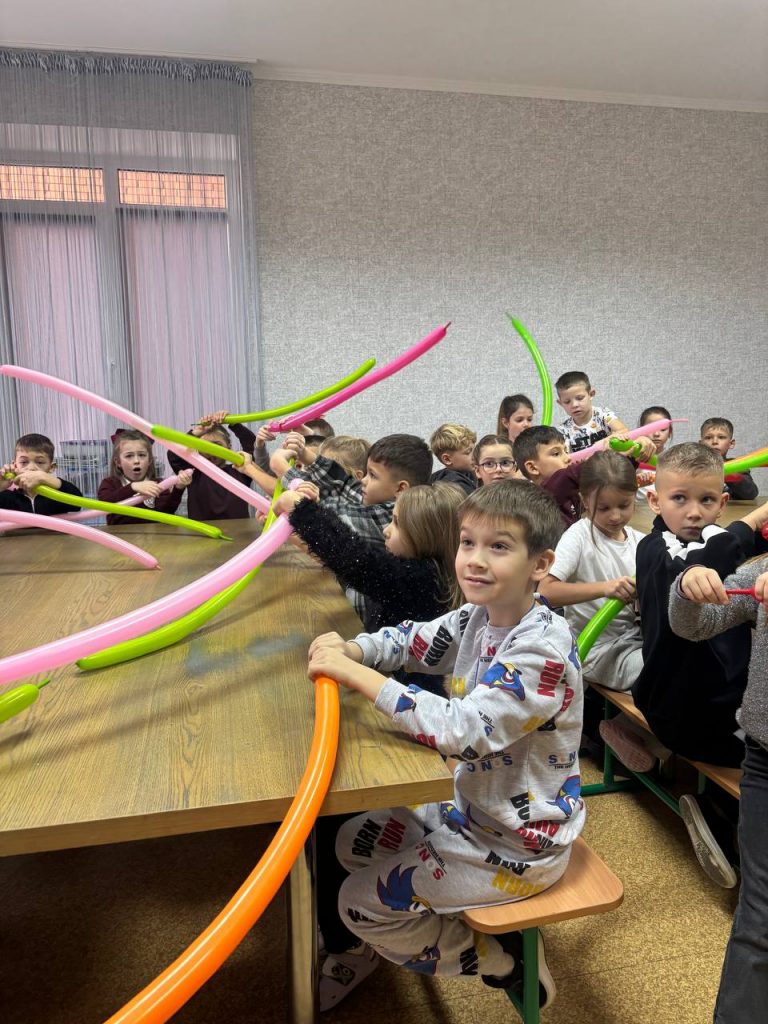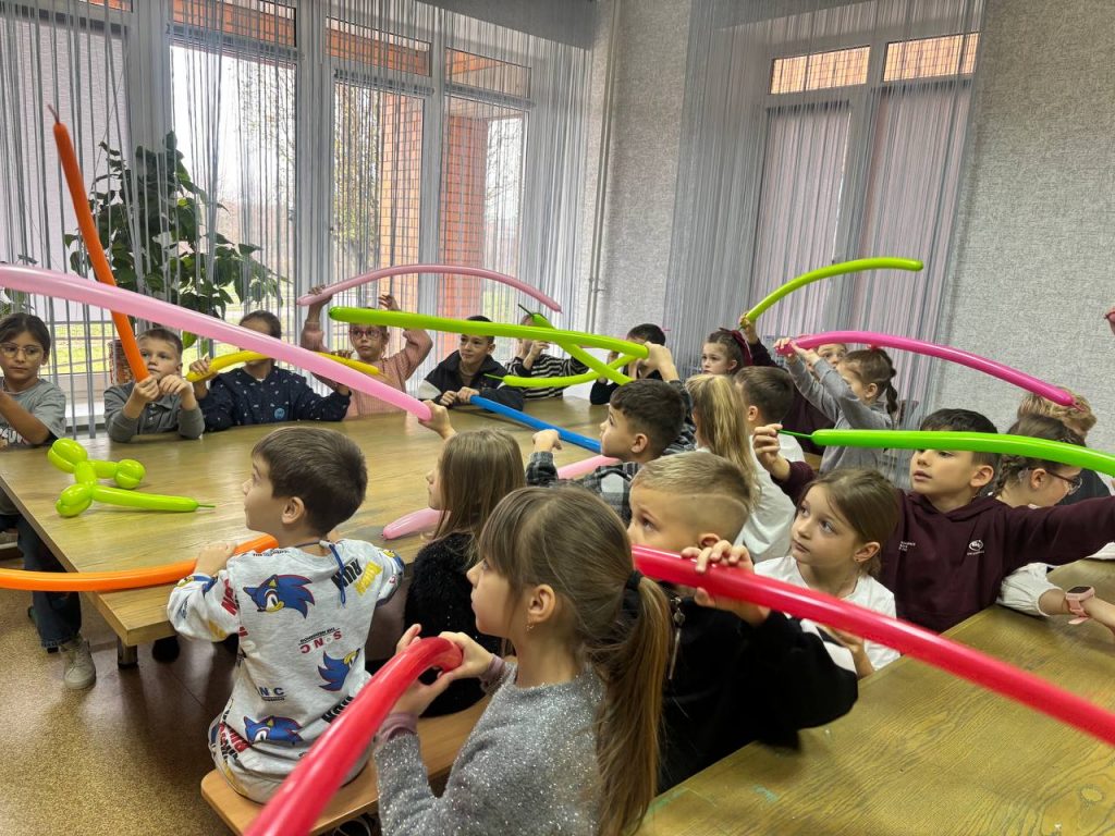 Щоб створити атмосферу радості та творчості, для учнів початкових класів було проведено заняття з твістингу — ми вчилися крутити повітряні кульки та створювати з них фігурки. Головним героєм майстер-класу став веселий повітряний песик, якого змогли зробити всі учасники.