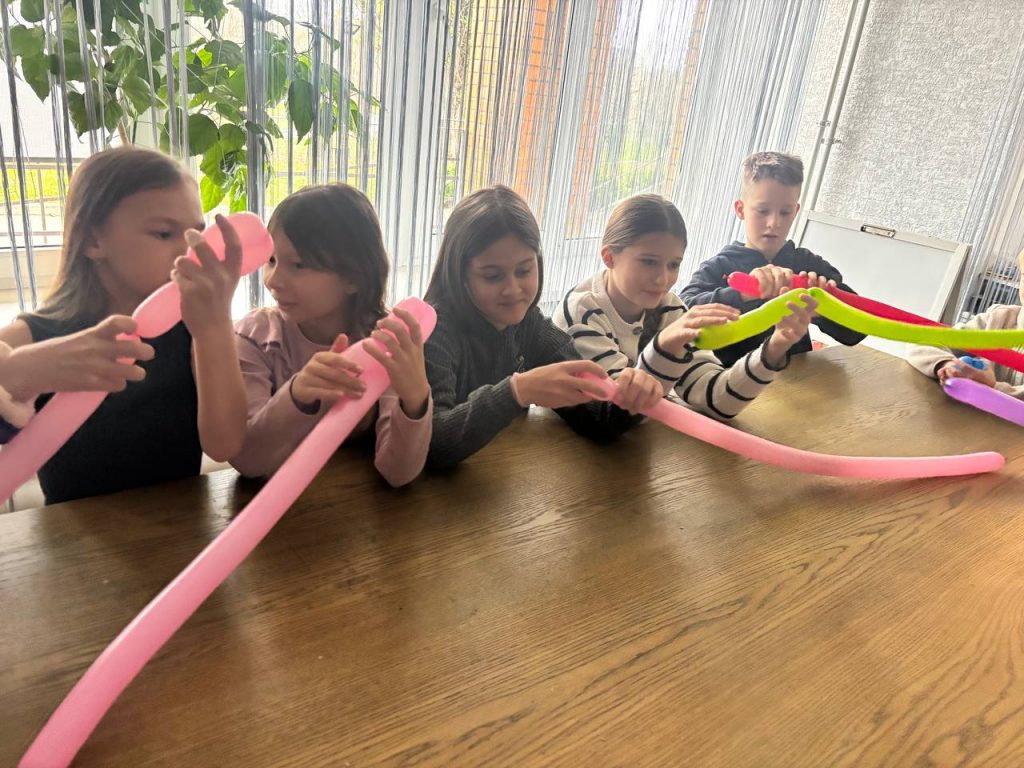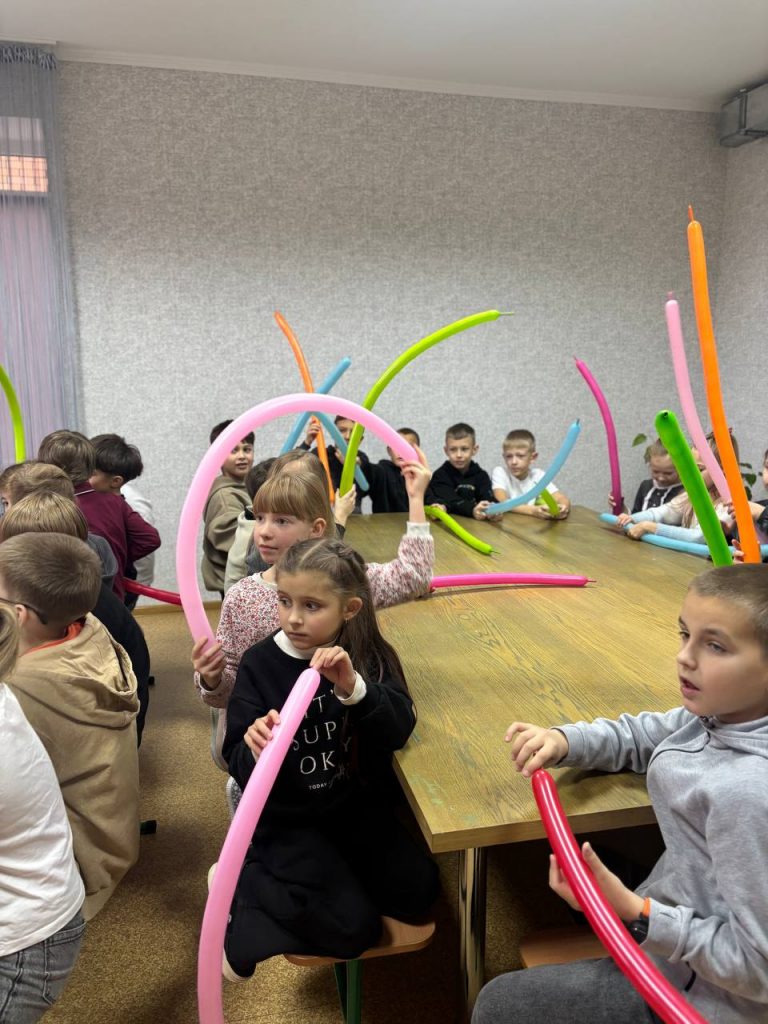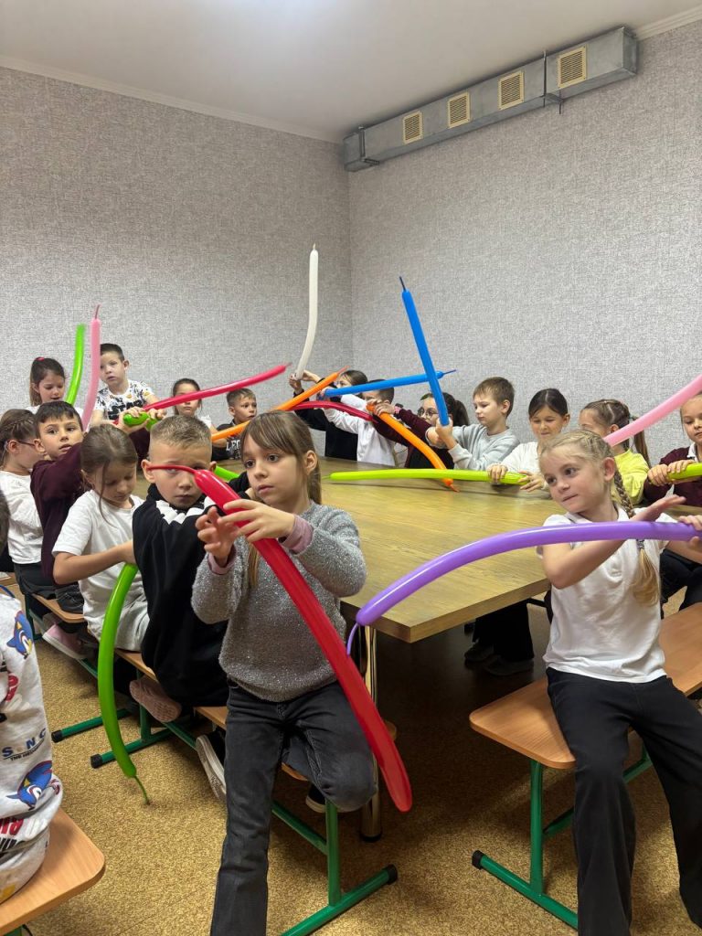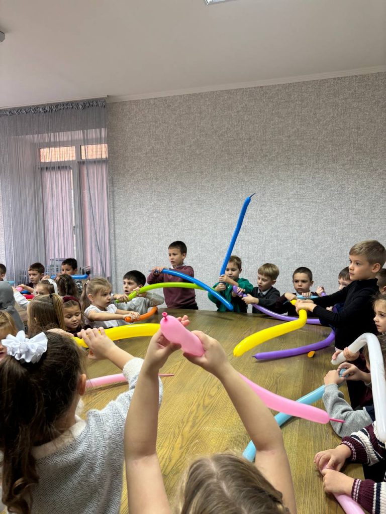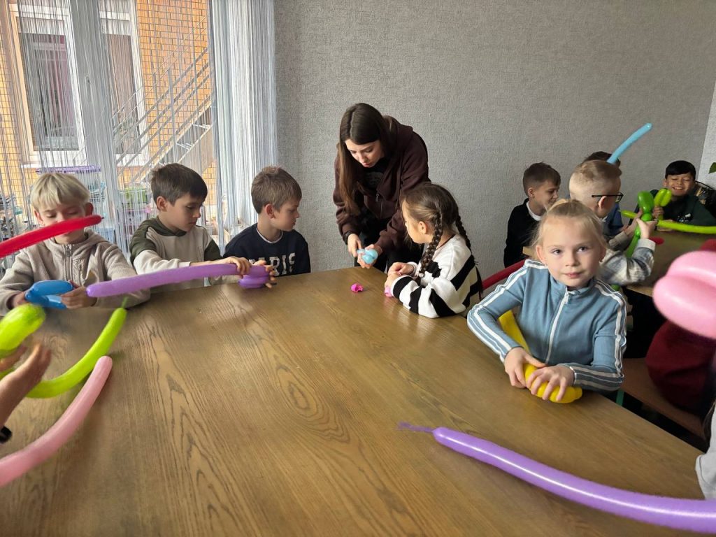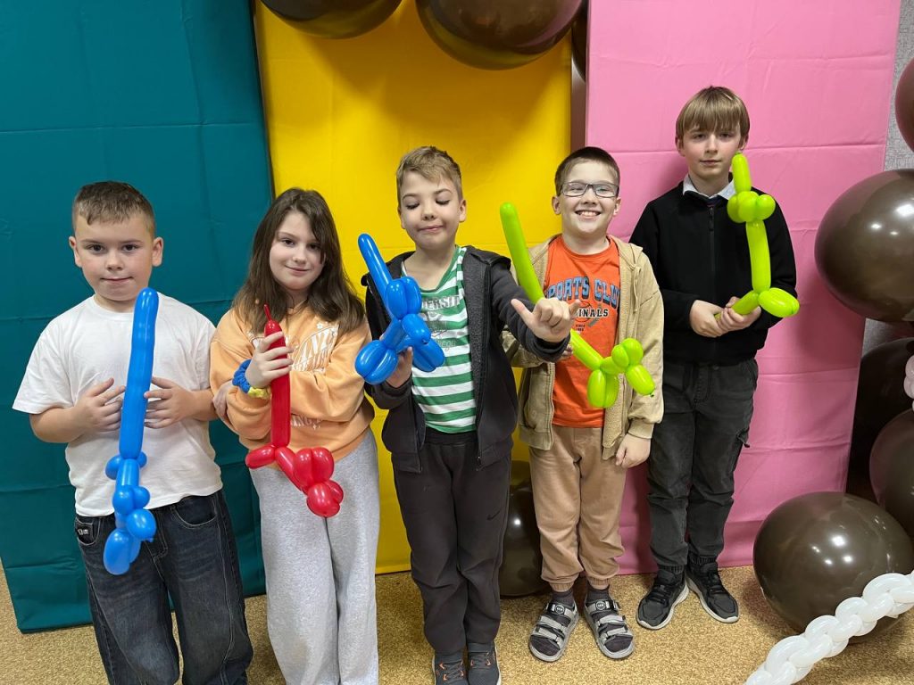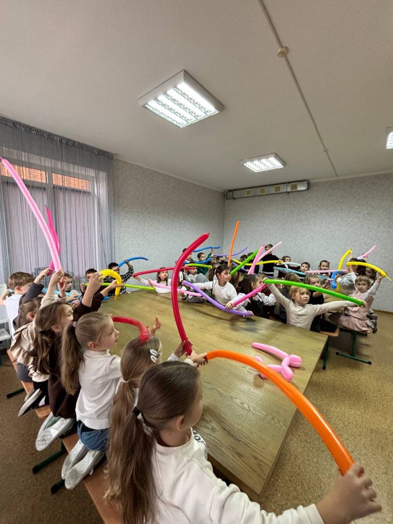 Щоб створити атмосферу радості та творчості, для учнів початкових класів було проведено заняття з твістингу — ми вчилися крутити повітряні кульки та створювати з них фігурки. Головним героєм майстер-класу став веселий повітряний песик, якого змогли зробити всі учасники.