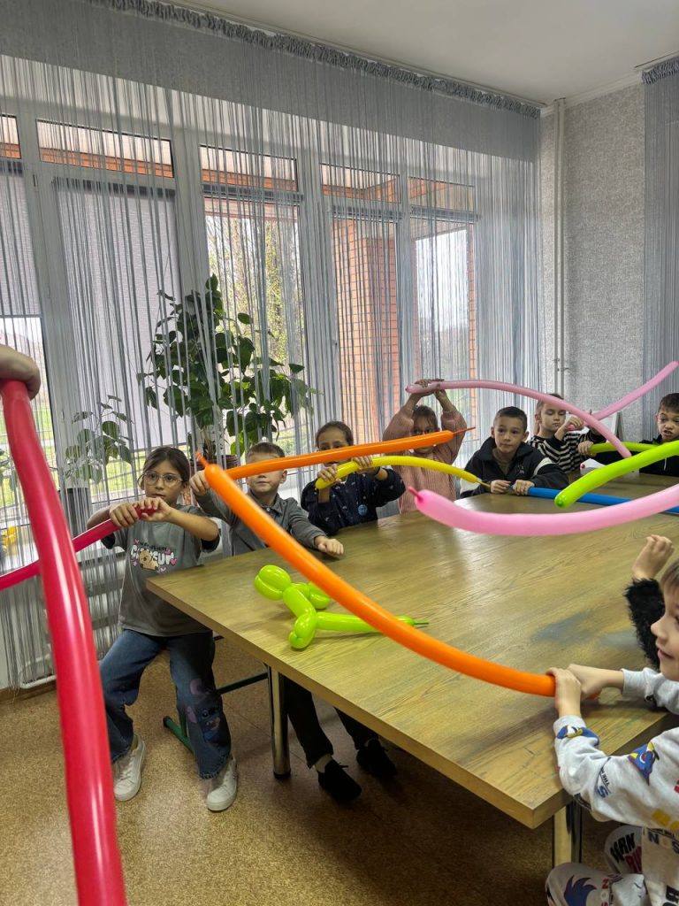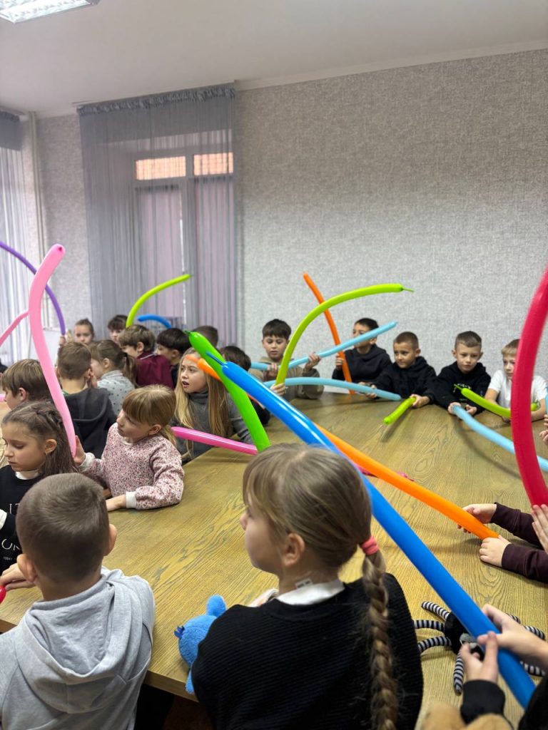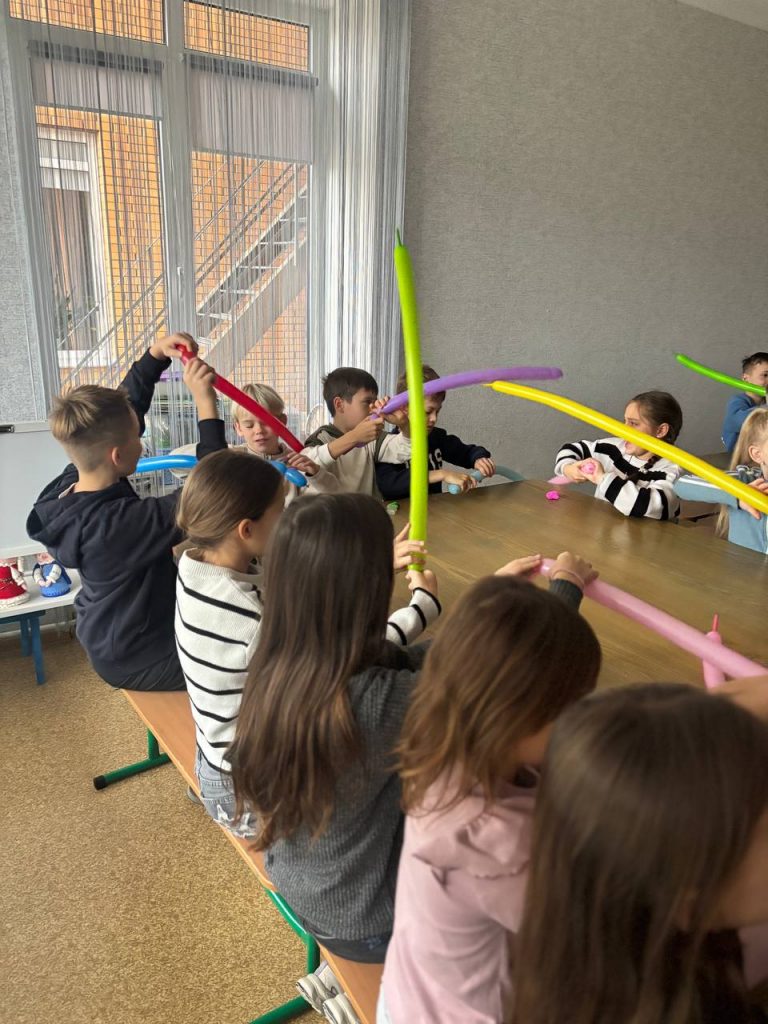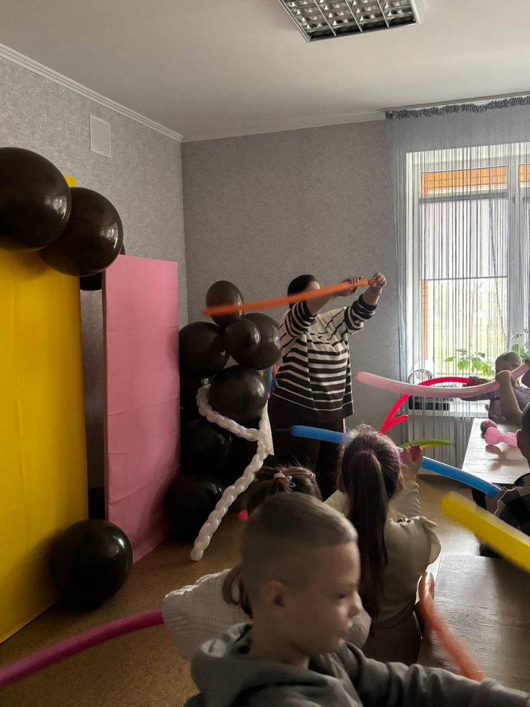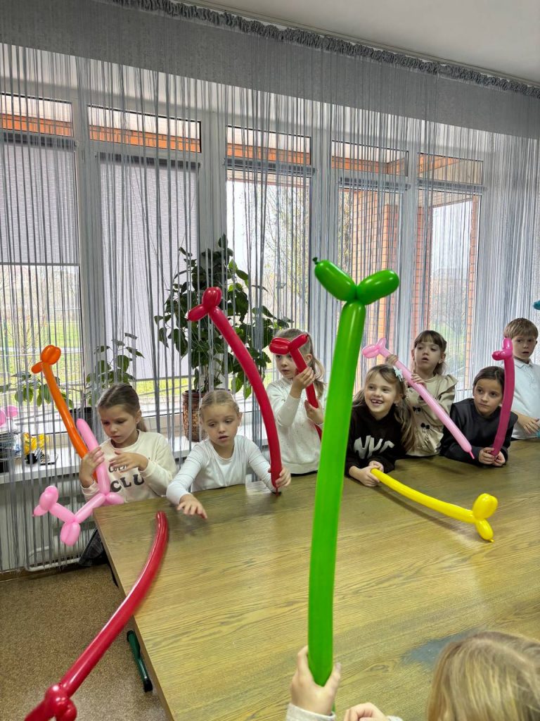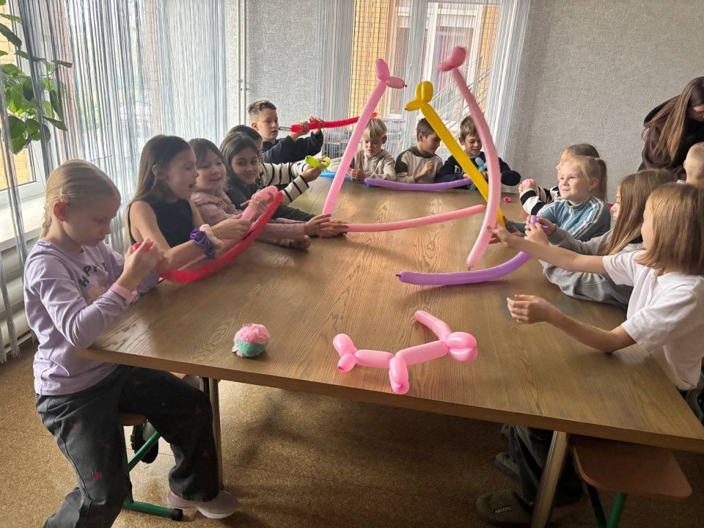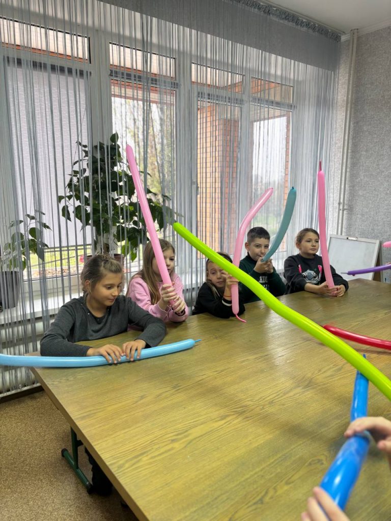 Щоб створити атмосферу радості та творчості, для учнів початкових класів було проведено заняття з твістингу — ми вчилися крутити повітряні кульки та створювати з них фігурки. Головним героєм майстер-класу став веселий повітряний песик, якого змогли зробити всі учасники.
